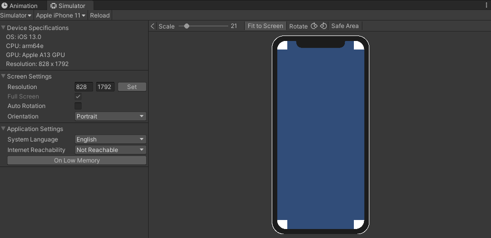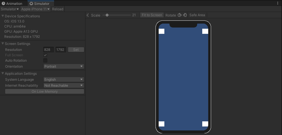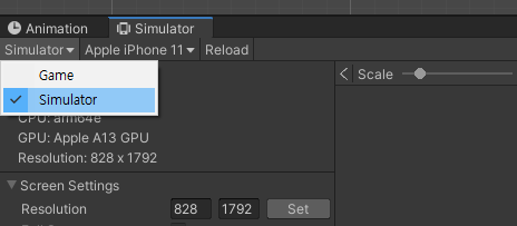 Game 탭을 눌러 Simulator로 변경한다.